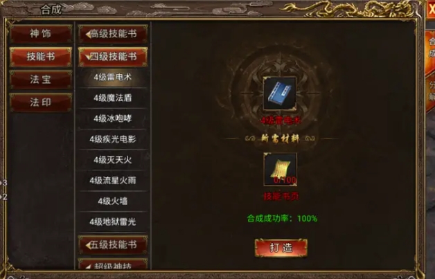 合成材料:五级技能书需要四级技能书、100个技能书页和1个金之结晶。