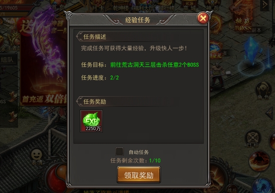游戏每天会提供10次经验任务,完成这些任务可以获得稳定的大量经验。经验任务的难度适中,适合玩家在日常游戏中轻松完成。建议玩家每天按时完成这些任务,以确保稳定的升级进度。
