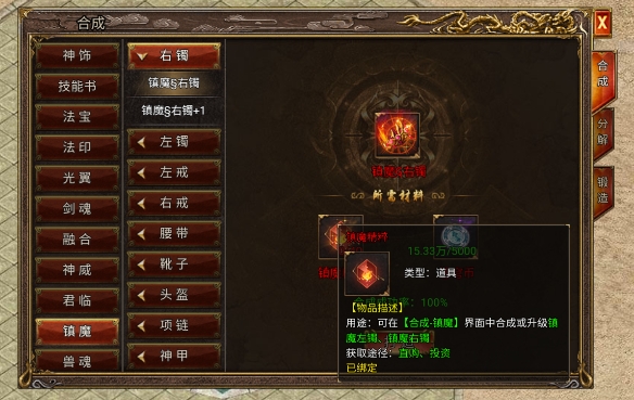 镇魔精粹是合成镇魔装备的基础材料,获取足够的镇魔精粹是提升镇魔等级的前提。以下是一些获取镇魔精粹的方法: