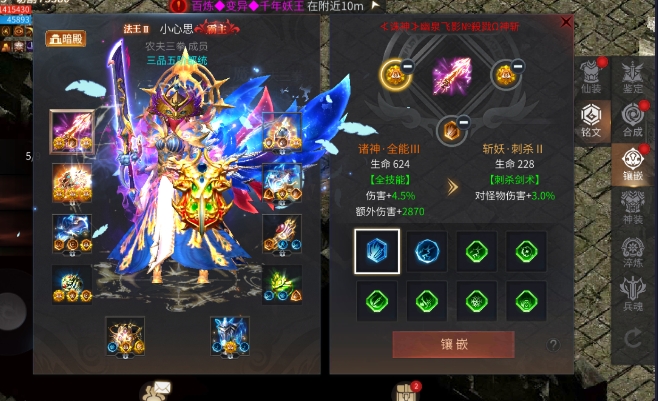 金刚施毒*3:增加法师的生存能力,提升抗性,适合面对高伤害攻击时使用。