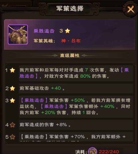 英雄增伤:英雄增伤正好契合吕布在近战的输出,使其在近战回合能够打出高额伤害。