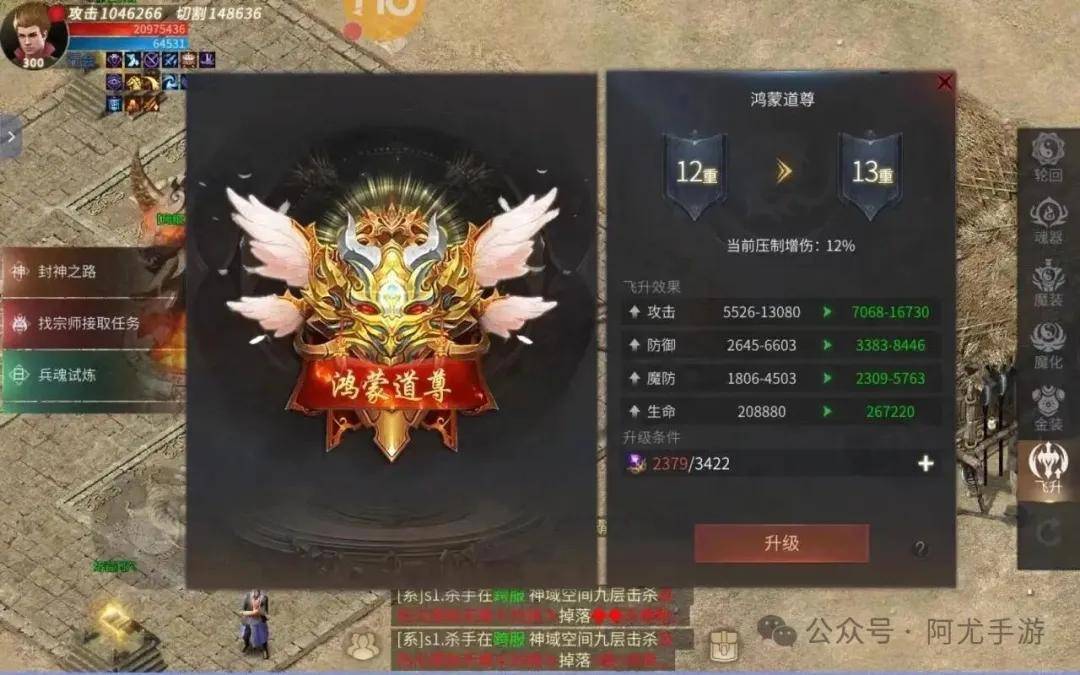 觉醒效果:消耗100个圣兽之魂可激活“圣兽领域”,提供:范围增伤20%、减伤15% 、显著提升跨服战竞争力。