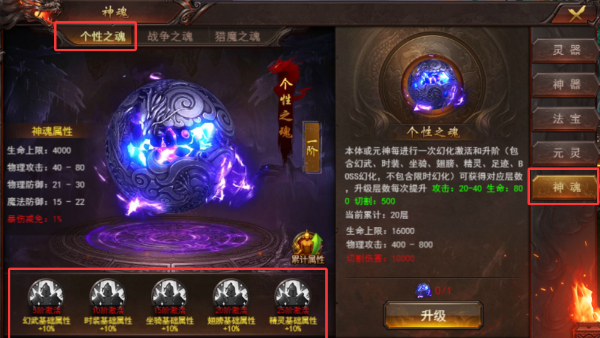 入口位置:神器-神魂,开服天数达标后解锁