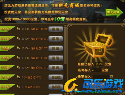 升级投资,顾名思义,是对于你等级提升而做的一个投资。玩家可以投入1000~10000元宝,对于投多少也都是大家视自身情况而定的。投资之后在升级的时候可以获得大量的返利。每次升级都可以获得对应的返还金额,你的元宝也会越来越多。
