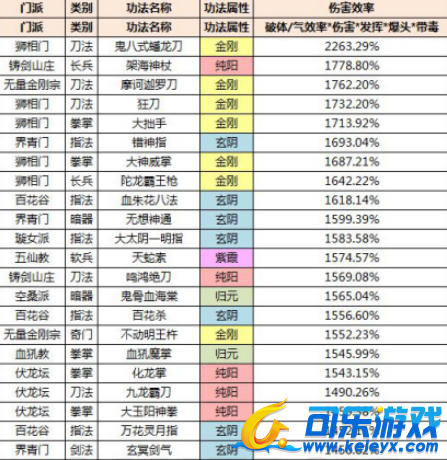 2. 是所有招式的伤害效率(破防加成上限3,爆头倾向加成上限1.2,带毒加成上限1.2),玩外伤进狮相门就完事了,内伤整体比外伤要弱,玩的话基本是走玄阴3派(百花/璇女/界青)。