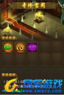 奇珍宝阁这个活动副本可以通过采集宝箱来获取大量的经验、铜钱还有武勋。对于想要升级想要提升武勋值的玩家来说,这个活动副本还是很适合的。这个活动副本的玩法其实也很简单,无非就是开宝箱同时还会有PK,只要你变强了别人打不过你,那宝箱也肯定就是你的了。