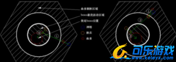 类似武林老四的内外圈技能,如右图BOSS脚下两个红圈,其中10人为正确站位。