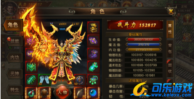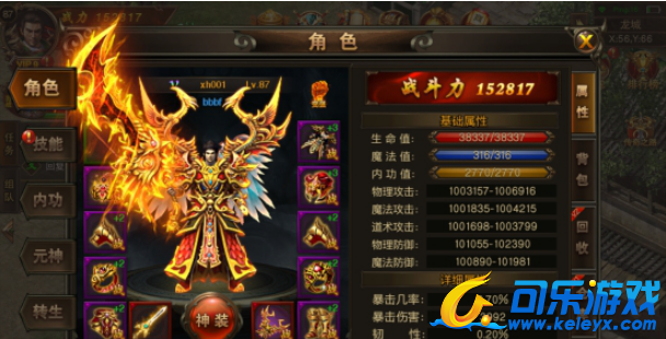 元神装备:拥有特殊属性效果,分为4个部分,分包为元神面甲、元神护肩、元神护膝和元神吊坠