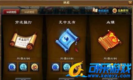 80级绝招有强攻、排山倒海、回旋击。90级绝招有穷追猛打、无中生有、血镇。三个90级绝招学习所需材料为黄色符印X10、蓝色符印X30、青色符印X30。只要活得这些符印就可获得相应绝招。