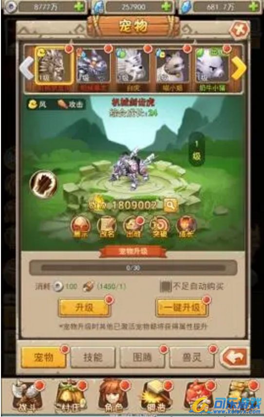 激活后的宠物可以通过使用一定数量的宠物口粮和石币进行升级操作,升级后的宠物会获得更加强力的属性!