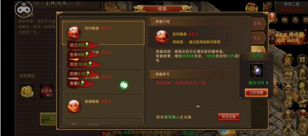 精通技能包括光翼精通、龙魂精通、官印精通、魂石精通、披风精通、星魂精通、血玉精通、神盾精通、神魄精通、勋章精通。精通技能中光翼精通的学习需要角色光翼达到天使之羽,龙魂精通需要龙魂达到龙魂幻珠一星、官印精通需要官印达到天武战将之印一星、魂石精通需要角色魂石达到一阶、披风精通需要披风达到百战披风一星、星魂精通需要角色星魂达到1级、血玉精通需要血玉达到金玉良缘一星、神盾精通需要神盾达到护卫者一星、神魄精通需要神魄达到火龙之心一星、勋章精通需要勋章达到青铜勋章。精通技能的熟练度也是通过使用技能书获得,精通技能的技能书需要玩家前往黑市商人处兑换。