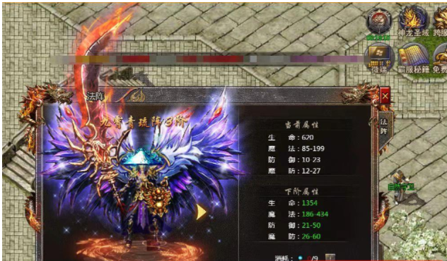 当我们收集到了足够的阵法之灵时,就可以前往到庄园的NPC“阵法炼制”处进行自身的阵法等级提升啦,提升阵法可以得到生命、攻击/魔法/道术、防御以及魔防的阵法属性效果。且阵法的等级越高,具备的属性也就越高哦。