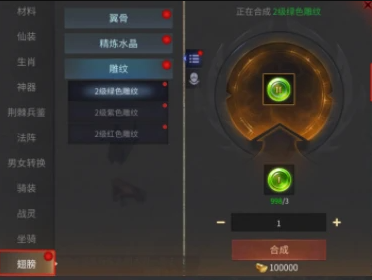 翅膀雕纹可以给我们带来大量的基础属性,比如绿色雕纹是高额生命,紫色雕纹是护甲值、暴击伤害抵抗,红色雕纹是神圣攻击、神圣防御。镶嵌高级雕纹就可以依次激活以下属性加成啦:生命回复、反伤减免、护甲值和神圣防御。