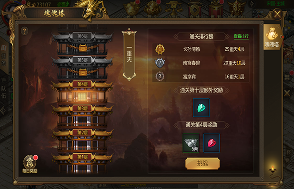 魂魄塔是一个可以获得大量魂魄石的活动,魂魄塔不限层数,可以一直向上通关,还会有通关排名哦。