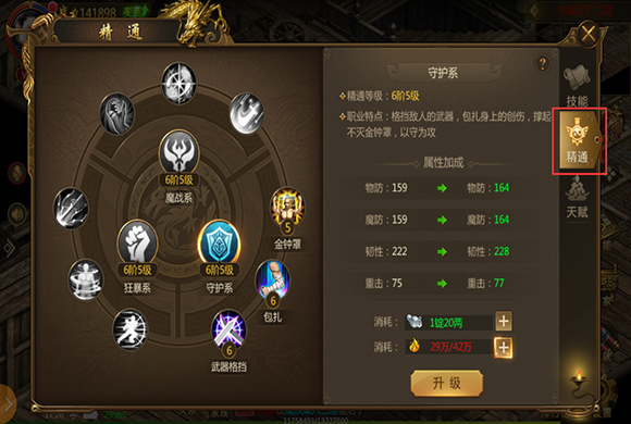 想要升级精通需要消耗精通值和绑银,每升10级需要消耗一定数量的突破密卷哦。