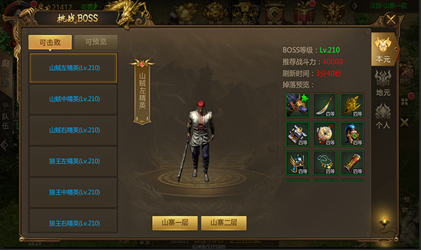 本元boss掉落本元装备为主,随着世界等级成长,本元boss掉落将逐步提升。 地元boss掉落地元装备为主,根据boss等级不同,掉落不同等级的地元装备。 个人boss进入消耗副本卷轴,每日可多次进入击杀。