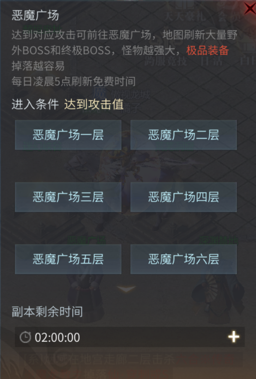 我们每天进入恶魔广场有两个小时的时间,所以小伙伴们要把握住机会哦。