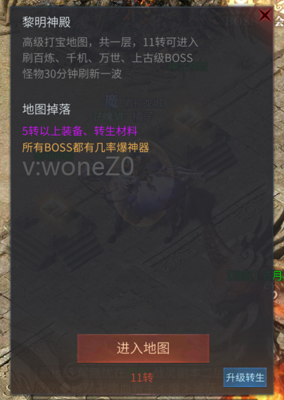 黎明神殿是一块高级打宝地图,一共只有一层,但是可以电洛5转以上装备和转生材料哦,所以还是很值得去的呢。
