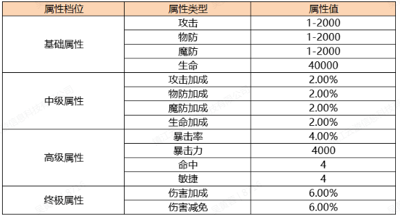 单日充值20000元,可选4种属性,其础+中级+高级+终极。