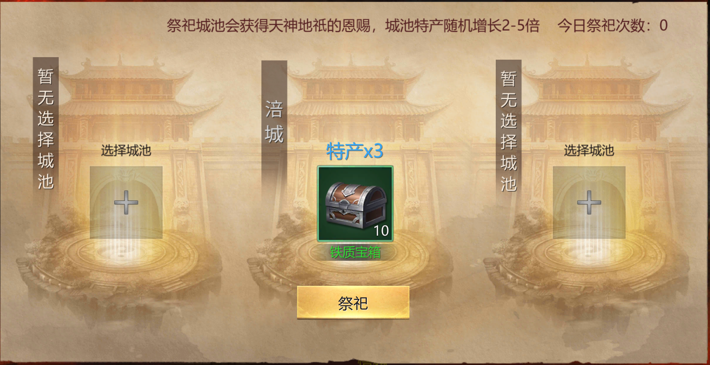 每日只可进行1次祭祀,选定城池后不可再进行更改。