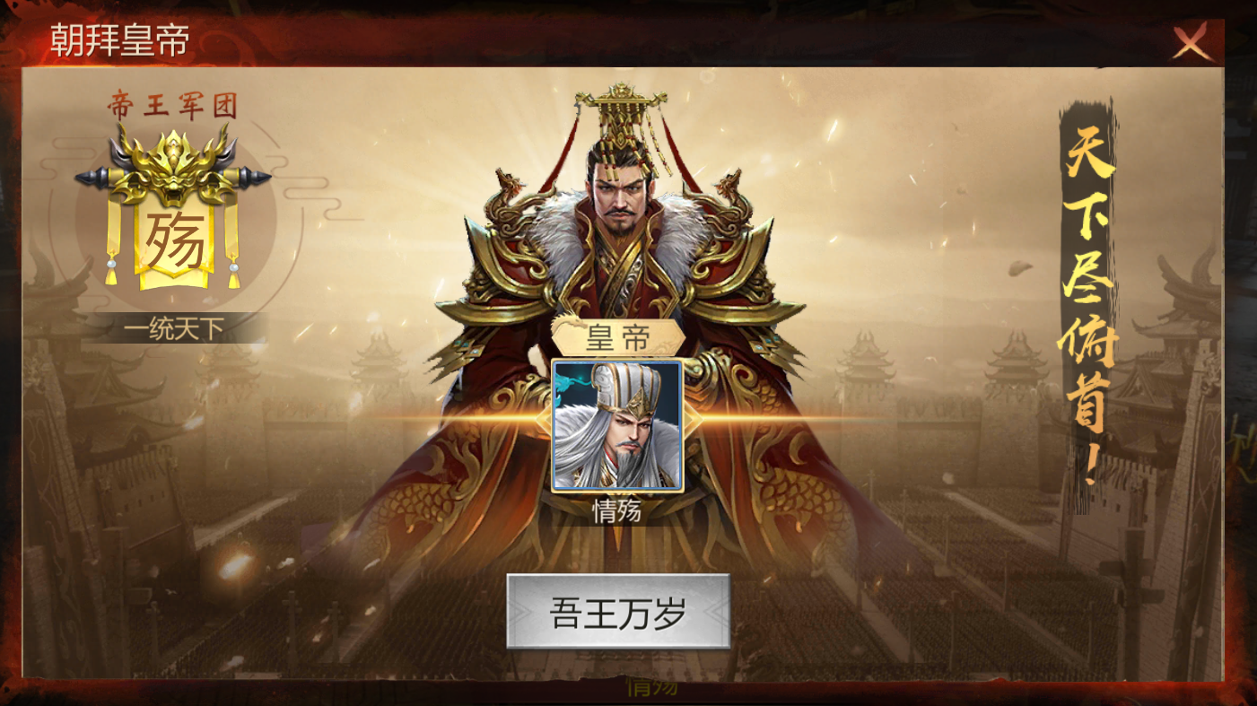 进入皇宫之后,我们就会看到朝拜这个选项了。点击它就可以进入到朝拜皇帝的界面了,点击吾王万岁就可以朝拜皇帝了。