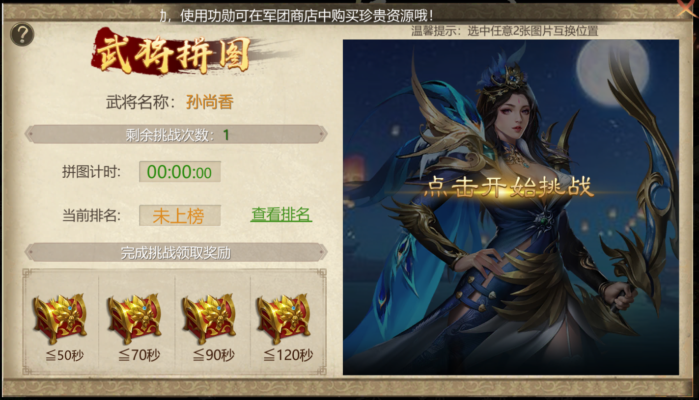 武将拼图每天5点重置开启,同时发放上一次排行奖励。计时宝箱奖励未领取则会在次日5点以邮件形式发送。
