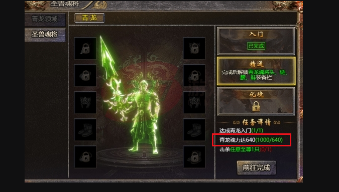 小伙伴们在佩戴青龙魂将装备时,精通和化境级别的青龙魂将装备,就要青龙魂力达到指定点数后,才能佩戴更级别的青龙魂将装备。大家要想获得青龙魂力的属性,可通过佩戴入门级别的青龙魂将左镯、右镯、左戒、右戒,来获得这种属性哦。