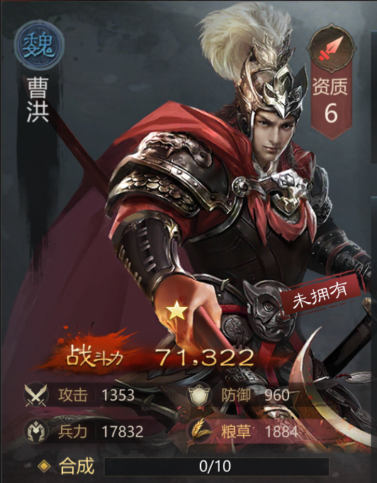 目前软软知道的获取曹洪的途径只有一种,那就是在聚英馆中会有几率获得武将碎片,然后合成曹洪。
