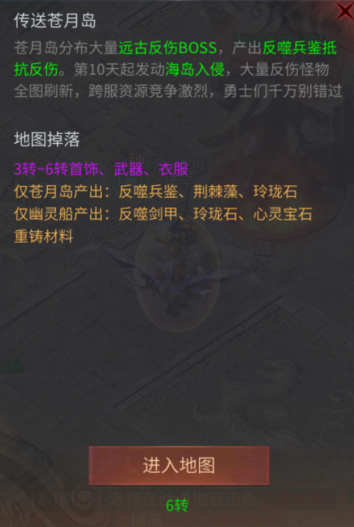 沙漠地宫地图会掉落3转及以上装备还有转生材料,沙漠地宫中的所有BOSS都有几率爆神器哦,感兴趣的小伙伴还不快快冲起来!