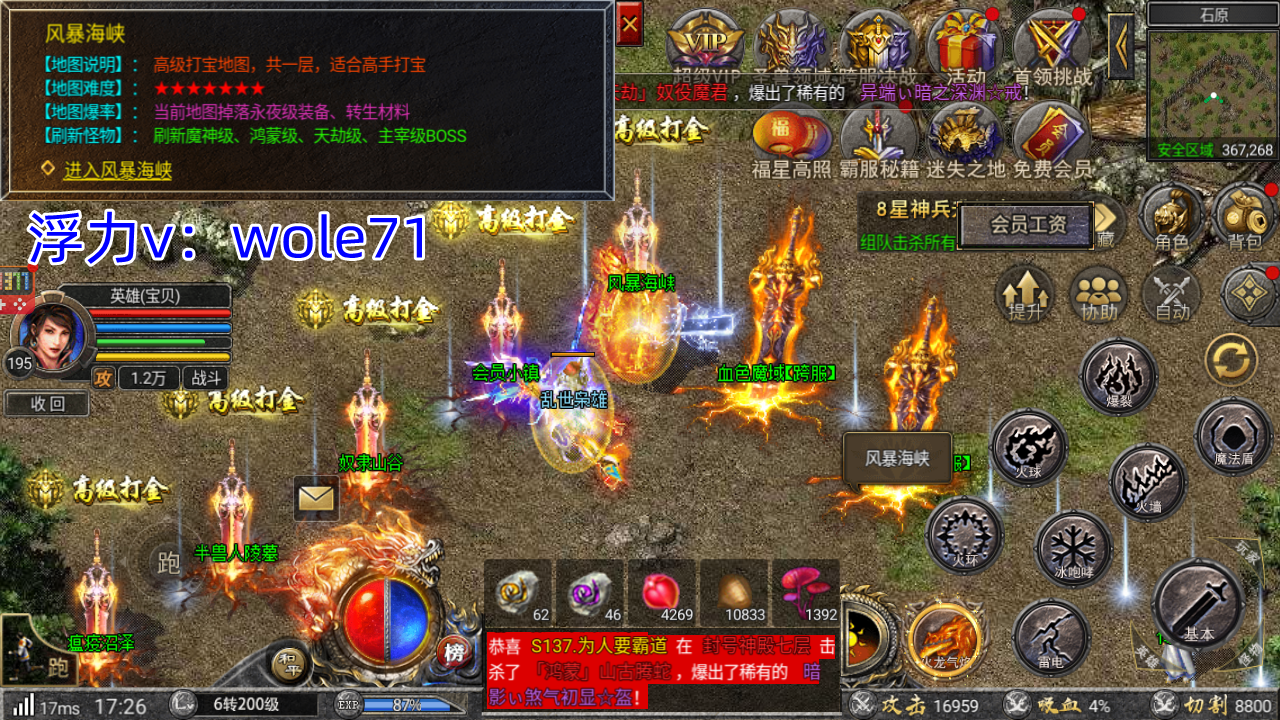 在风暴海峡这块地图中会刷新魔神级、鸿蒙级、天劫级还有主宰级BOSS,还都是比较厉害的boss呢。