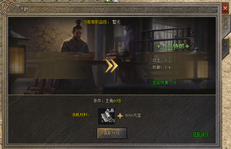 我们还可以通过升级官职提升大量攻击、防御、生命恢复等基础属性。