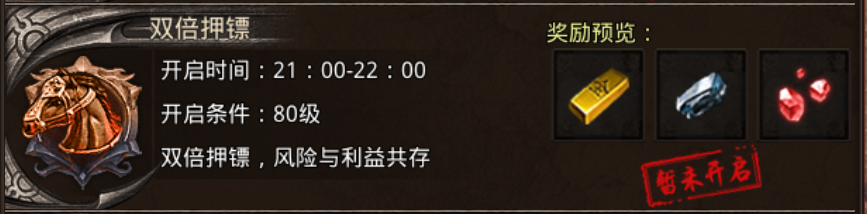 当然双倍奖励也不是白给的,押镖期间走出安全区后会收到其他玩家的攻击,如果将你的镖车击杀后攻击的玩家会获得奖励哦。