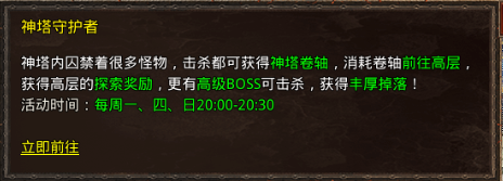 神塔活动的时间是每周一,周四,周日20:00-20:30开启。