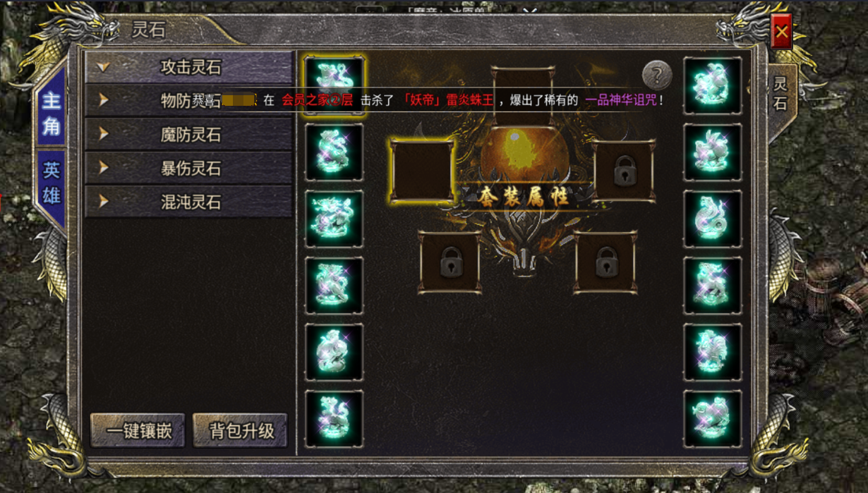 大家进入到灵石界面里,可以对身上的各种生肖装备,进行镶嵌灵石,来提升自身的战斗实力。