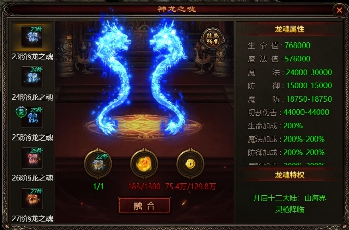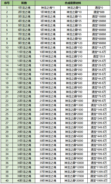 神龙之魂升级消耗数据
