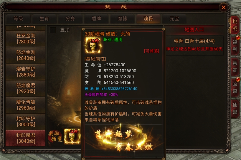 要获得魂骨,玩家必须击杀魂骨BOSS。这些BOSS通常带有护盾,如果没有魂骨套装,玩家将无法打破护盾。因此,建议玩家在活动界面获取养成好礼,以快速升级魂骨,进而获取更高级的魂骨装备。