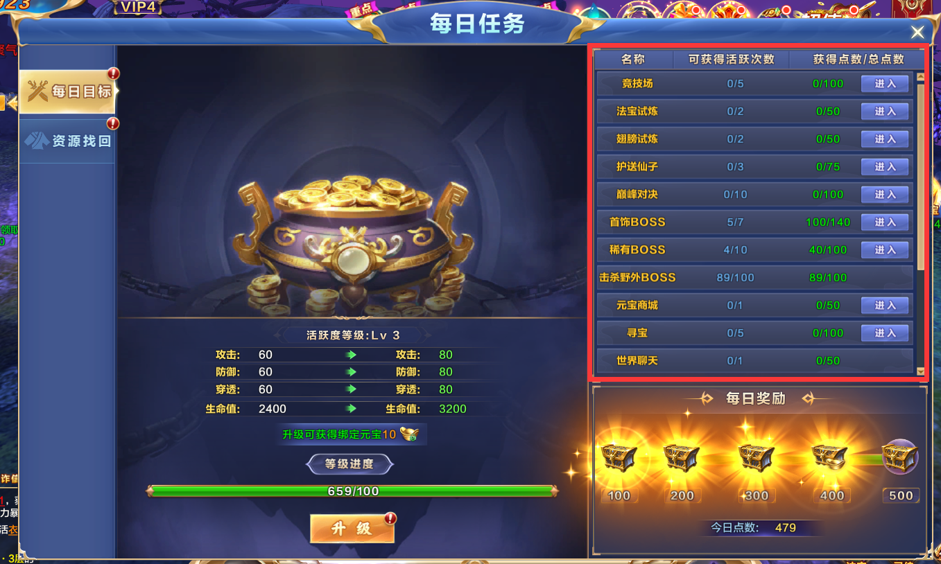 完成每日任务可获得活跃点数,完成任务越多,活跃点数越高,即可获得更多优厚奖励。