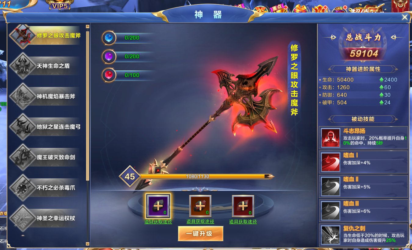 根据超自然的威力的上古神器仿制而出的多种神器,不仅有着属性的加成,随着神器等级的提升,还会激活更多的强力被动技能。