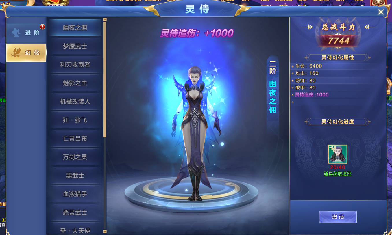 集齐对应的激活道具可解锁灵侍幻化角色,不仅好看,还有超高的属性加成。