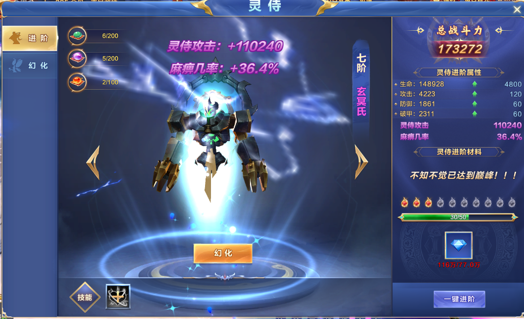 灵侍通过钻石进行升阶,阶数越高的灵侍能够打出更高的伤害。