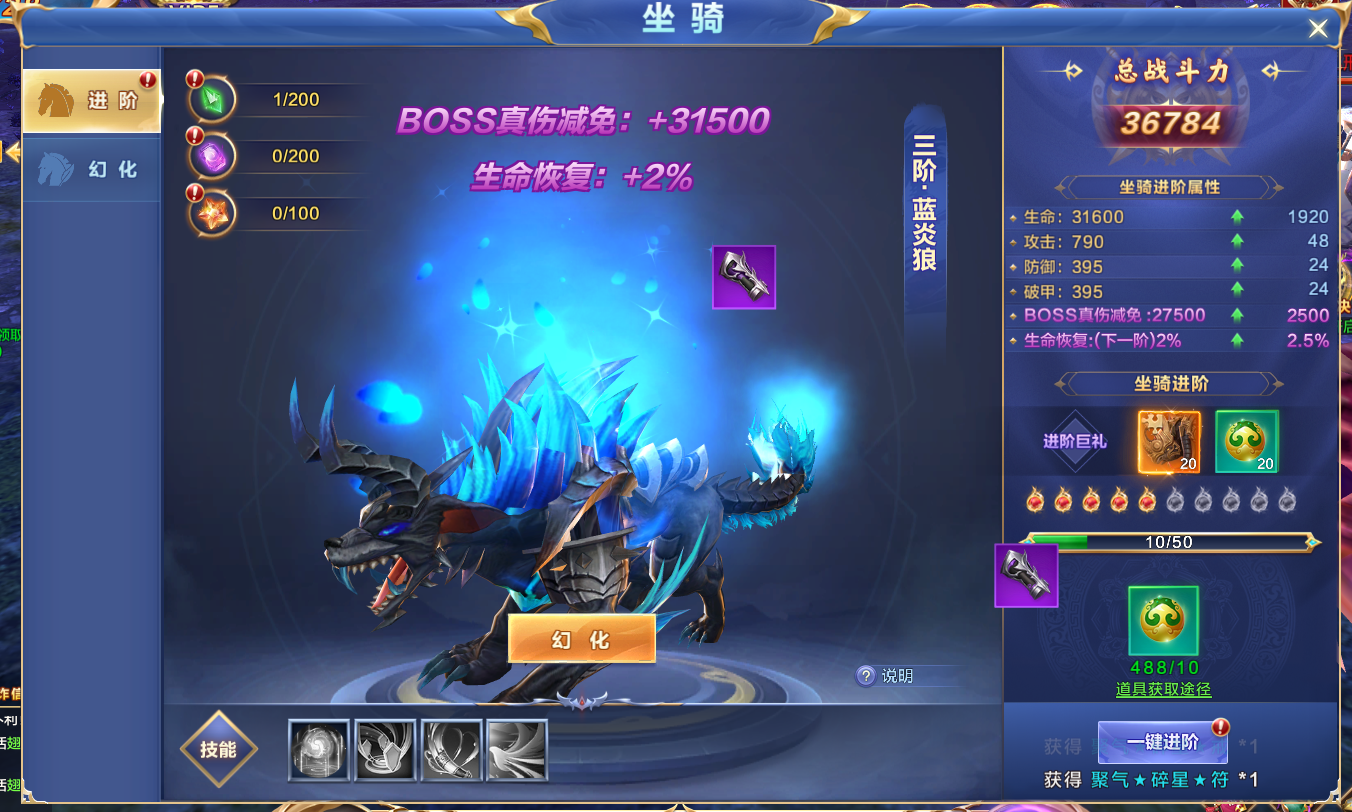 随着坐骑的阶数提升可以解锁不同的被动技能。
