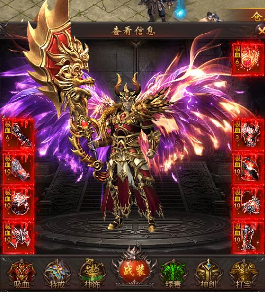 吸血神装以及材料可通过稀有boss和活动获取,提升吸血属性,打怪从此无忧。