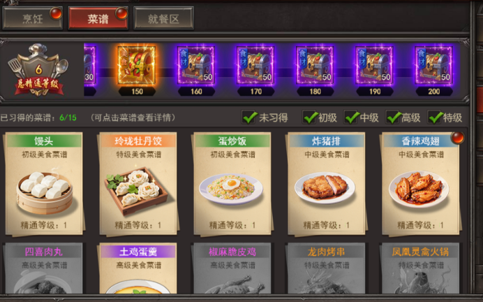 a. 达到对应厨艺精通等阶后,可消耗菜谱学习菜品;