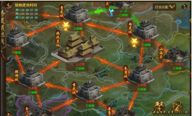 2. 行会成员可通过出生点进行攻击占领城池,但需要根据路线指引才能攻击,路线指示方向不对的不能攻击;