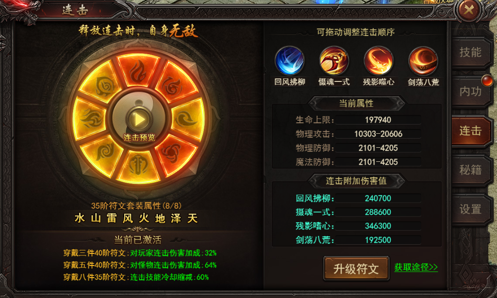 5、点击连击预览可以查看当前合击技能动态效果展示,可根据个人喜好调整连击顺序