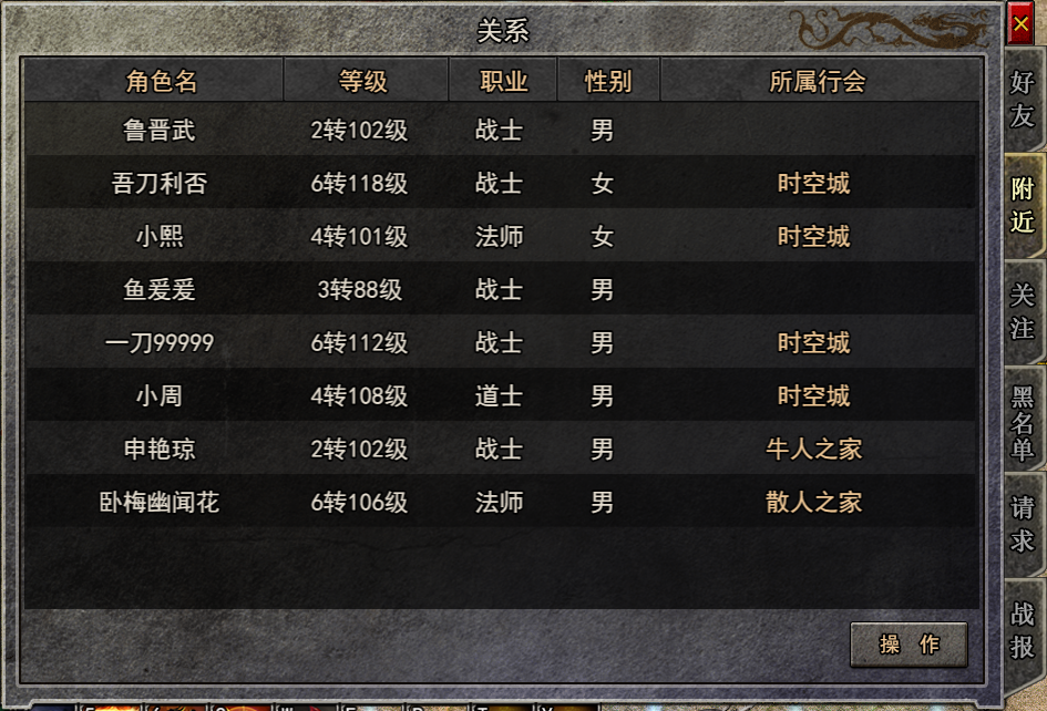 (2)可针对选定的附近玩家进行【私聊】、【查看信息】、【私人交易】、【删除好友】、【邀请组队】、【申请入队】、【添加关注】、【加黑名单】操作