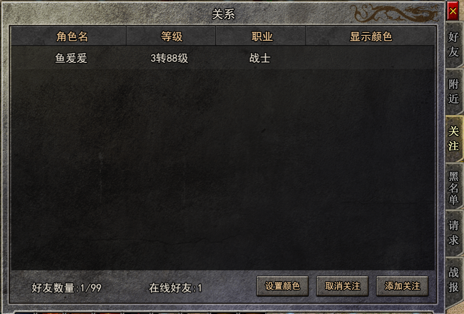(2)你可以给关注角色设置单独的名字颜色显示,方便再战场上快速发现对手