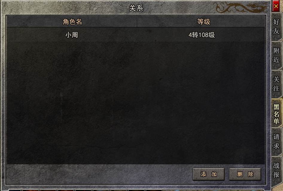 (1)在【好友】界面点击添加按钮输入角色名发出好友申请,对方接收并通过则双方建立好友关系