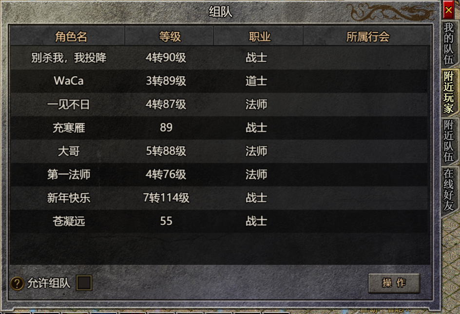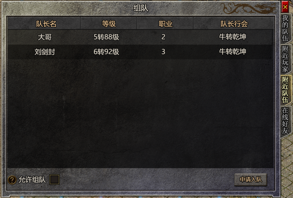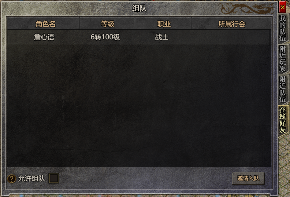 (2)你可以向其他玩家发出组队邀请,若该玩家允许组队,则直接组队成功;同样的,希望其他玩家邀请你加入队伍时,记得在本界面“允许组队”选项后方打勾