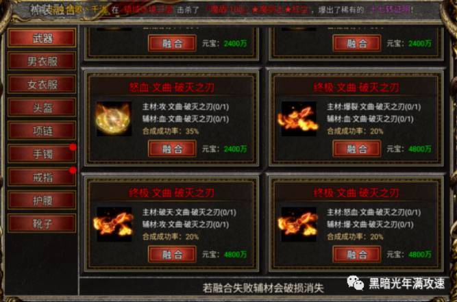 装备融合相比较与装备进阶就会复杂一点,因为装备类型较多,并且每个部位的类型基础也不太一样。